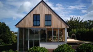 Maison Ossature Bois, pose sur pieux, à PONTRIEUX
