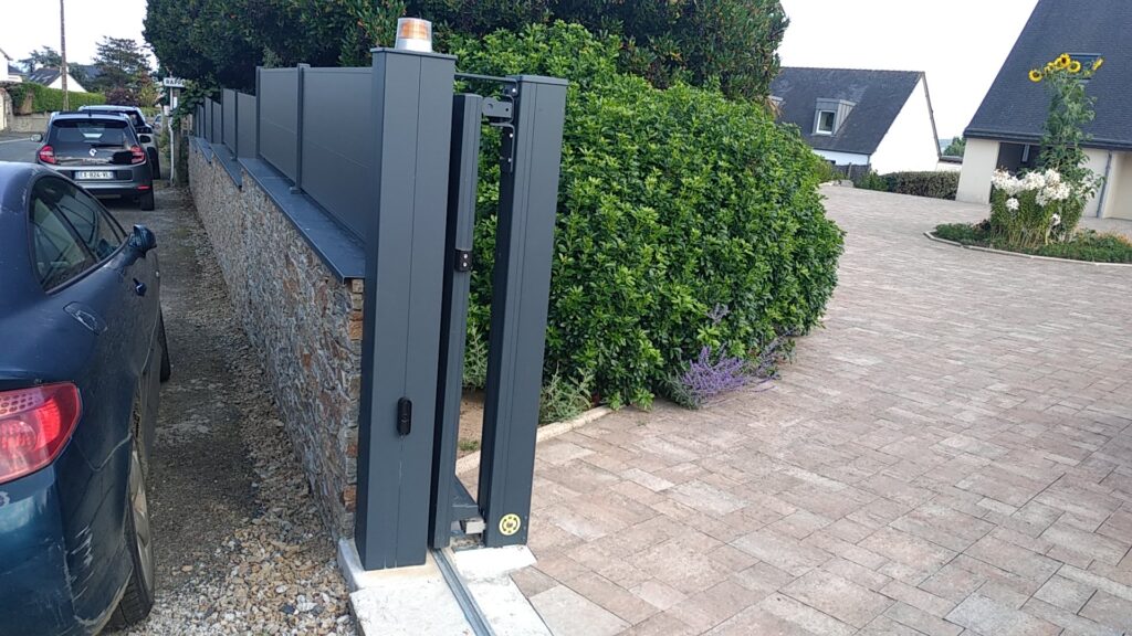 Portail de clôture coulissant, panneau plein, modèle Epure de chez AtlanteM, colori gris RAL 7016 texturé