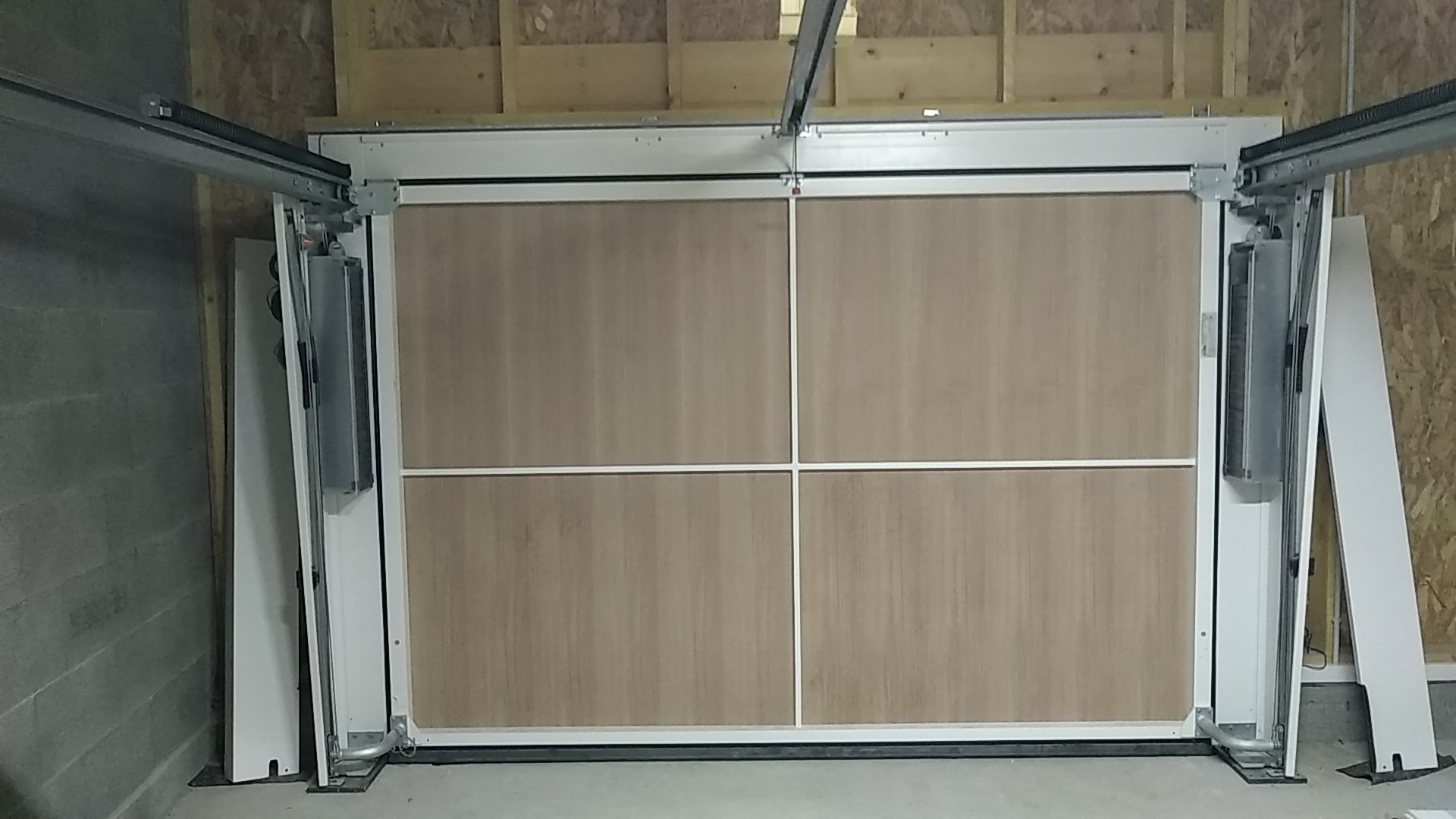 Porte de garage motorisée basculante, non débordante Tubauto, cadre acier nu colori blanc,